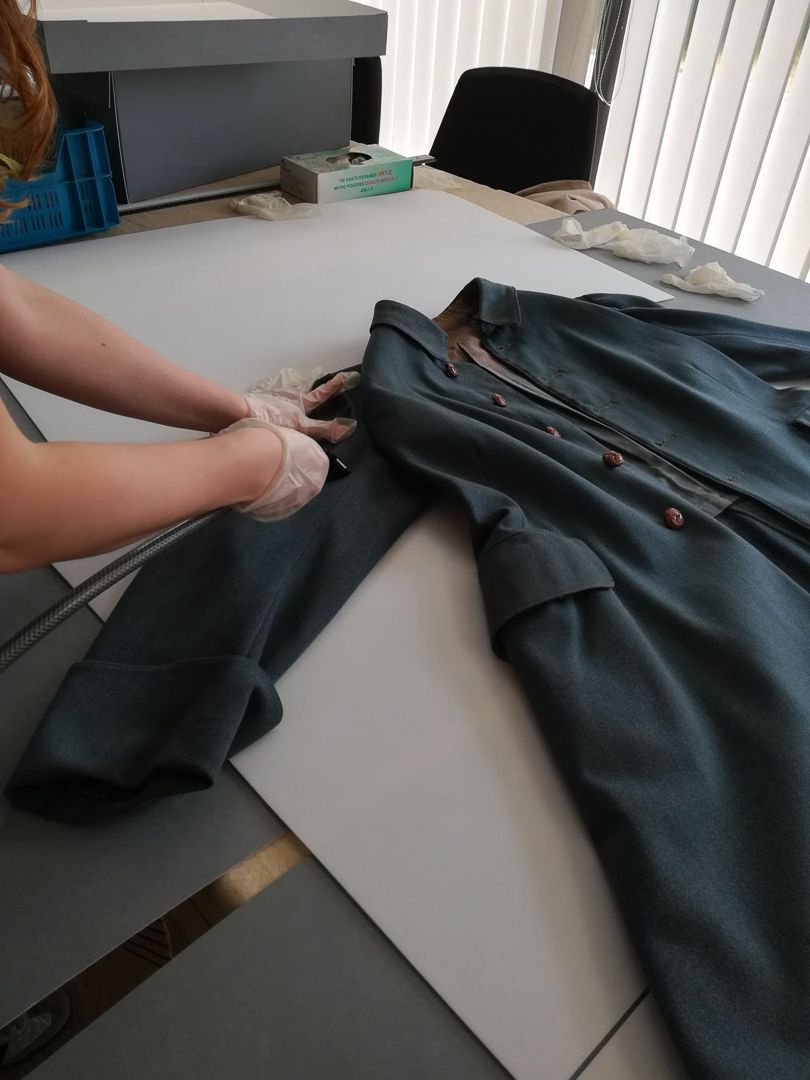 Cet uniforme, légué par la veuve du Maréchal à l’École Polytechnique en 1931, n’avait pas bénéficié de mesures de conservation depuis près de 90 ans. Lors de ce chantier, les étudiantes ont été initiées aux techniques de dépoussiérage et de conditionnement des collections textiles et tridimensionnelles. Elles ont fabriqué des boîtes, supports, et coussins pour préserver ces objets précieux, contribuant ainsi à la sauvegarde d’une part de l’histoire de France.