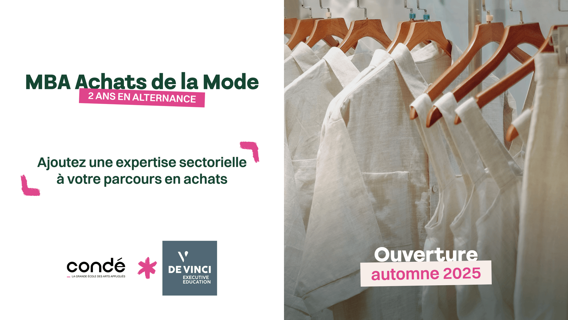 En 2025, Condé et De Vinci Executive Education lancent le MBA Achats de la Mode à Paris, alliant excellence créative et rigueur managériale à travers les expertises croisées de deux écoles de référence.