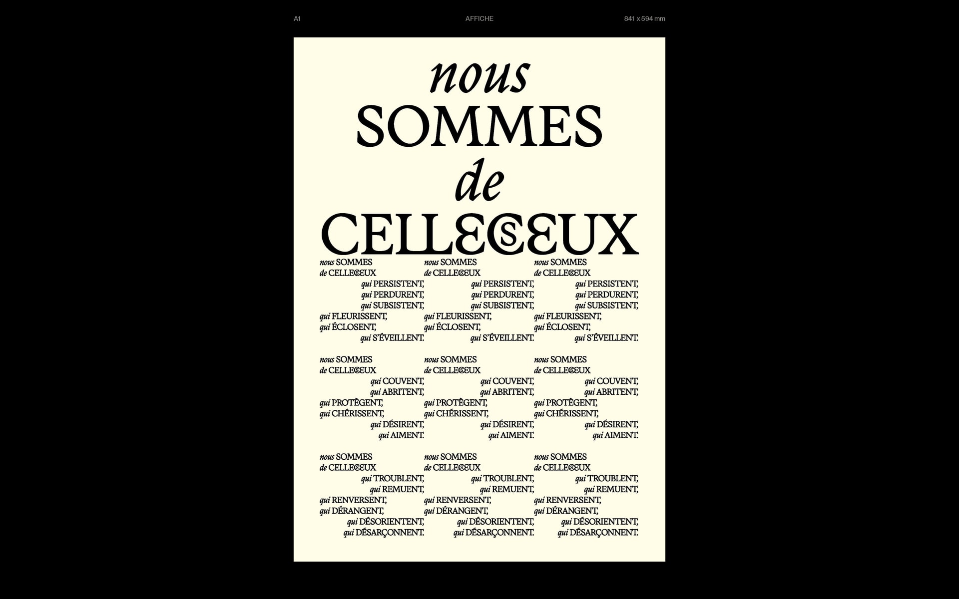 En tant que rédacteur·ice et directeur·ice artistique de cet objet, je suis partie à la rencontre de six personnes lesbiennes, âgées de 20 à 25 ans. Toni, Augusth, Djanka, Kathy, Elena, Kenza. Autour de trois thématiques que sont le rapport au corps et à l’identité ; le lien au couple et à la communauté ; et enfin l’émancipation, l’acceptation de soi au sein de la société. J’ai, tout d’abord, réécris le souvenir des discussions, de ces moments hors du temps, puis, dans un second temps, analysé leur rapport au geste ; leur communication non-verbale et leur manière d’être toute entière. L’objet éditorial allie donc ce récit sensible, à une sélection de photographies de Lin Zhipeng, Zanele Muholi, Chloe Sherman et Collier Schorr. L’objet est intime, sensible, lesbien et résolument inclusif.
